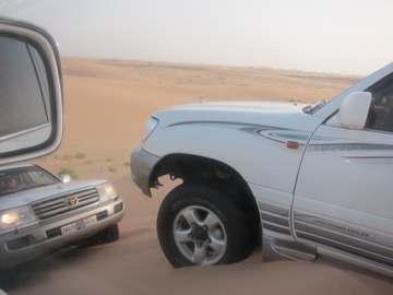 So we set out for an hour's drive out towards the deserts near Al Ain, and stopped at the ostrich farm where we got to see some pretty huge ostriches. We then saw some camels at the camel farm, and then drove off in a convoy of 26 4WDs for a spot of dune bashing. To the uninitiated, that basically means driving along metre high sand dunes then tipping over them. It's pretty intense stuff, especially for the front passenger, aka MOI! It basically felt like a rollercoaster only scarier. We also got stuck once, and had to be towed by another 4WD (see pic). Would I do it again...er only if I had to.